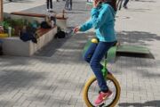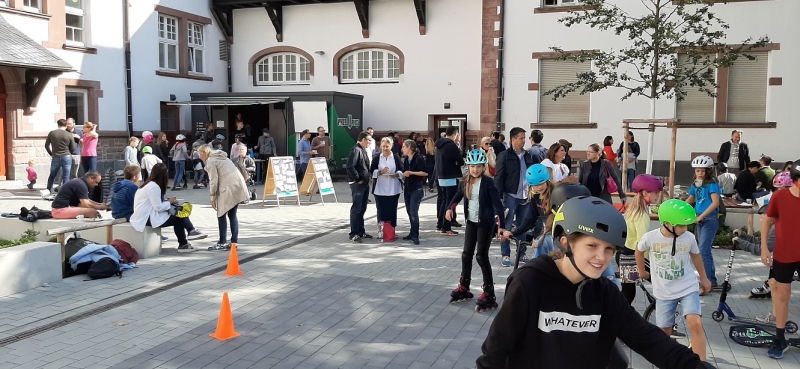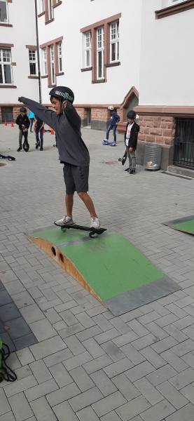 Einige ganz Mutige trauten sich sogar auf Einräder. Der Schulhof glich einem Skatepark!