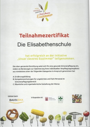 Deswegen hat die Elisabethenschule erfolgreich am Projekt "Unser cleveres Esszimmer teilgenommen, das Frau Hamm und Frau Hofmann organisiert und durchgeführt haben: