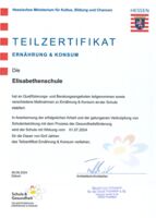 Die Teilzertifikate von „Schule und Gesundheit“ haben eine Gültigkeit von fünf Jahren und führen zur Zertifizierung der Elisabethenschule als "Gesundheitsfördernde Schule" am Sa, 28.09.2024 während unseres Schulfestes. Vielen Dank allen Kolleginnen und Kollegen der Elisabethenschule für ihren großen Einsatz für die Gesundheitsförderung an der Elisabethenschule. Und vielen Dank Frau Hofmann und Herrn Fischer für die Gesamtorganisation.