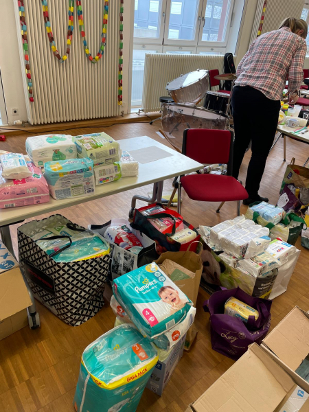 Innerhalb von weniger als 24 Stunden stellte die Elisabethenschule Unglaubliches auf die Beine! Mehr als 150 Kisten und Taschen wurden von Mitgliedern der Schulgemeinde für die geflüchteten Menschen aus der Ukraine gesammelt.