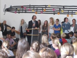 Am Montag fand die Einschulung statt. Bei der bunten Veranstaltung in der Aula wurden die neuen Fünfer freundlich von der Schulgemeinde mit Musik und Begrüßungsworten von Schulleiter Stefan Neureiter in Empfang genommen. Danach fand das statt, worauf alle gewartet haben: Endlich die neue Klasse, die neuen Mitschüler/innen und die Klassenlehrer/innen kennenlernen!