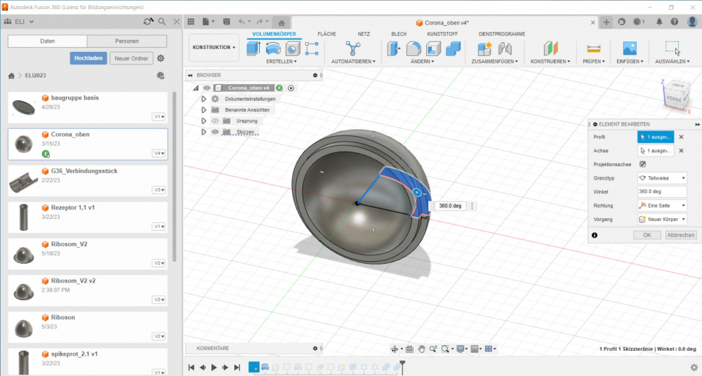 So erstellen wir zuerst Skizzen der einzelnen Bauteile am Laptop mit Hilfe eines CAD- Programmes (Computer-Aided-Program). Anschließend übertragen wir die Skizzen in ein sogenanntes „Slice-Programm“, welches die Wege des Druckvorgangs programmiert. Da unsere einzelnen Zellbestandteile teilweise recht kompliziert sind und dazu noch ineinandergesteckt werden müssen, treten beim anschließenden Drucken oft Fehler auf, die entweder manuell verbessert werden müssen oder zu einem neuen Druck führen. Aber durch jede Fehlerschleife werden unsere Programme bzw. die Produkte des Drucks besser.