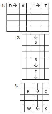 1. Wenn das Buchstabenpaar ein Rechteck formuliert, dann nehmen wir die anderen zwei Ecken dieses Rechtecks, immer den Buchstaben, der in derselben Zeile ist. Beispiel: E ist in der zweiten Zeile der zweiten Spalte, K ist rechts unten, also wir nehmen C und W.
