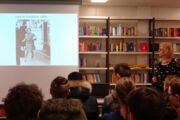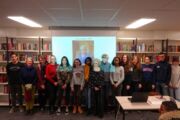Etwa 20.000 jüdische Kinder wurden aus Deutschland, Österreich und der Tschechoslowakei nach dem Novemberpogrom 1938 nach Großbritannien und in andere Länder gebracht und somit vor dem Holocaust gerettet. Als Vorbereitung hatten wir im Unterricht den empfehlenswerten Film „Die Rettung der Zehntausend“ gesehen. In der Lesung mit Frau Lieberz-Groß haben wir dann anhand von Dokumenten und Fotos das berührende Schicksal der jungen Lore Jacobs kennengelernt. Zuletzt haben wir noch ein Foto vor ihrem auf der Leinwand projizierten Foto gemacht, mit dem wir die über 80-jährige Lore Jacobs nach England grüßen wollen.