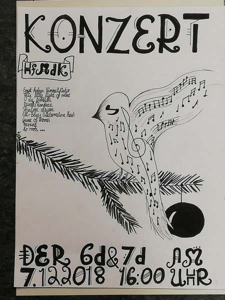 Die Musikklassen 6d und 7d sowie der Eli-Chor laden ein zum Konzert am Freitag, 7.12. um 16:00 im Kleinen Saal der Musikhochschule Frankfurt (Eschersheimer Landstraße 29). Eintritt frei, herzlich willkommen!