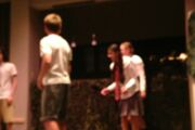 Und es war wieder eine Glanzleistung, was am Ende auf der Bühne zu sehen war. Wer meint, die jungen Schauspieltalente seien überfordert gewesen, die Grausamkeit der Geschehnisse auf einer einsamen Insel überzeugend darzustellen, der irrt, denn gerade diese steigende Dramatik der Ereignisse konnten die Schülerinnen und Schüler nachempfinden und mit ihrer ungebrochenen Jugendlichkeit erschreckend deutlich aufzeigen.