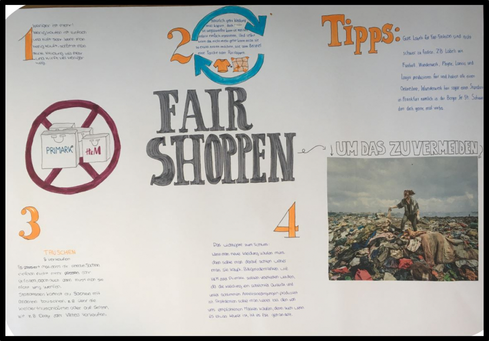 erstellten sie Infotexte (eine Auswahl als Link weiter unten) und Plakate, die vor unserer Kleidertauschbörse aufgehängt werden. Ein Grund mehr dort mal vorbeizuschauen!