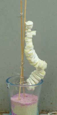 Ein Junge aus der 5a hat eine Wirbelsäule aus verschiedenen Gummibärchen gebaut. Damit hat er gierige Blicke der Klassenkameraden geerbt.