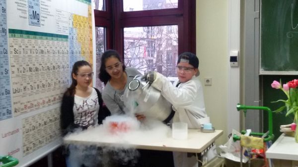 Nach dem Ausprobieren haben sich die Klassen im Chemiehörsaal getroffen und mit Frau Winn über den Tag gesprochen. Die Viertklässler haben erzählt, dass es ihnen gut gefallen hat. Unserer Klasse hat dieses Projekt auch sehr viel Spaß gemacht. Das Projekt ging einen Vormittag lang.
