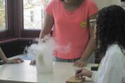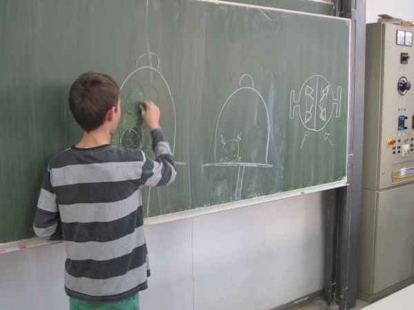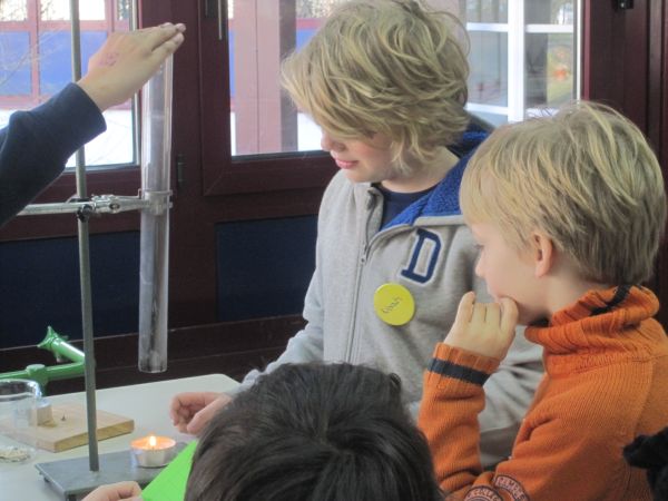 Die Viertklässler konnten zum Beispiel erfahren, was mit einem Schokokuss im Vakuum passiert (und ihn natürlich anschließend vernaschen!), wie man sehr einfach selbst Raketen herstellen und damit schießen kann, wie sich Vögel in der Luft halten oder wie viel Luft sie selbst ein- bzw. ausatmen.