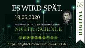 Die momentane Pandemie des SARS-CoV-2 Virus verhindert natürlich die übliche Version der "Night of Sience", weshalb in diesem Jahr die 15. NIGHTOFSCIENCE mit über 20 Vorträgen zum ersten mal online stattfindet. Die ganze Nacht lang können wir auf eine virtuelle Entdeckungsreise gehen und schauen, was die einzelnen MINT-Fachbereiche der Goethe-Universität zu bieten haben und viele interessanten Vorträge genießen.