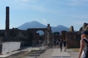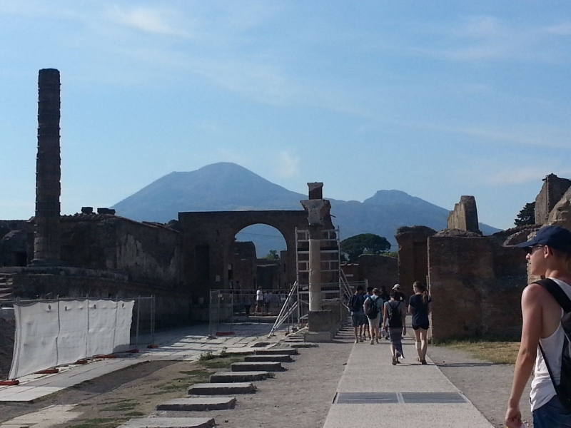 Außerdem blickt man auch direkt zum Vesuv, von dem alle sprechen und der mit seinen Lavamassen so viele Tausend getötet hatte. Man sieht dort auch, wie Archäologen noch weiter Dinge ausgraben, die noch immer verschüttet da liegen. Das zeigt, wie langsam, vorsichtig und geduldig man dort arbeiten muss. Insgesamt hat es mich gefreut, dass wir in Pompeji waren und ich mir jetzt alles so viel bildlicher vorstellen kann, wenn wir im Lateinunterricht drüber sprechen. (Andu Kelati, 8e)