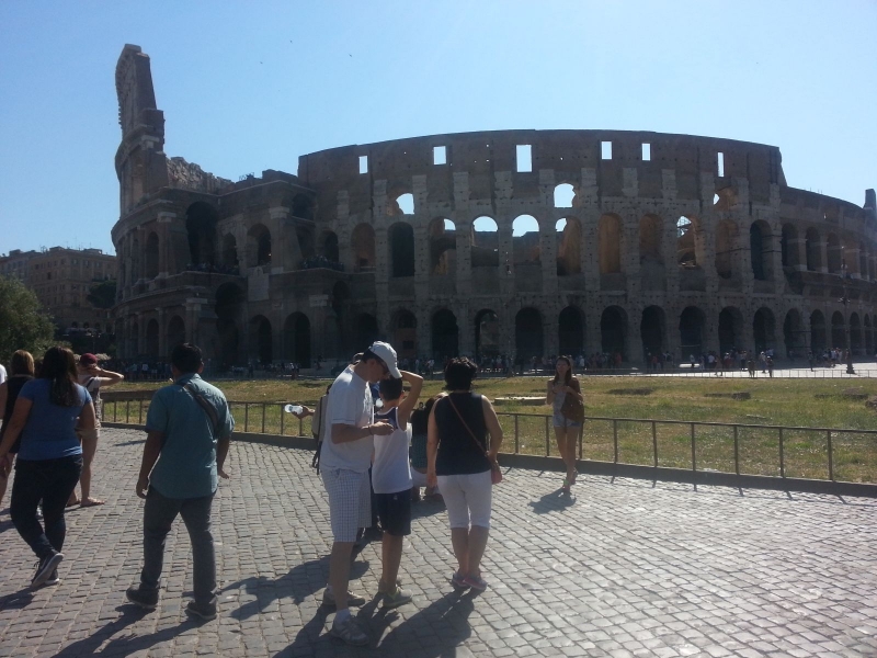 Danach, es war inzwischen schon ziemlich spät, ging es mit dem Bus wieder zurück zum Hotel, um gemeinsam Pizza zu essen. Am nächsten Morgen wanderten wir zum Kolosseum. Wir sind zwar nicht reingegangen, aber trotzdem wirkte das Amphitheater schon von außen sehr beeindruckend. Anschließend haben wir uns durch die vielen Touristen gedrängt, um zum Forum Romanum zu gelangen. Frau Liebenau hat uns einiges über das Forum erzählt, wie zum Beispiel über die Vestalinnen, die im alten Rom das Herdfeuer zu bewachen hatten, und die Bedeutung der einzelnen Gebäude. Dann saßen wir noch an der Stelle des alten Kapitols, wo die wichtigsten Götter der Antike, Jupiter, Juno und Athene, angebetet wurden. Zum Schluss haben wir uns entschieden zum Trevi- Brunnen zu laufen, um eine Münze hineinzuwerfen und damit sicher zu gehen, dass wir wieder nach Rom kommen.