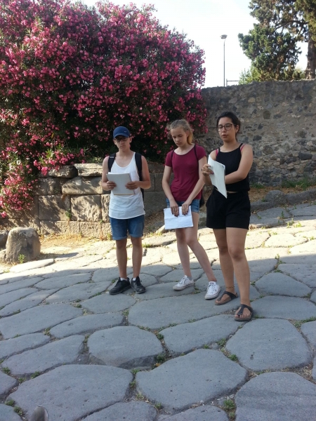 Wir waren in Pompeji und Herculaneum. In Pompeji hatten wir zwei Stunden Zeit zu dritt eine Präsentation vorzubereiten, wir z.B. das Theater, um die anderen dort zu führen. Das war sehr spannend.