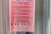 Eine SDS-page, also Proteine auf einer Membran, rot eingefärbt.