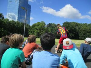 Nach dem Aeronauten-Workshop haben die 5. Klassen eine Floßfahrt auf der Nidda gemacht. Sie mussten erstmal ihr Floß zusammenbauen und dann konnten sie fahren. Den Kindern persönlich hat dieser Ausflug sehr viel Spaß gemacht, ihnen war nur ein bisschen kalt.