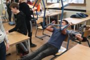 In den abschließenden zwei Stunden arbeiteten alle Teilnehmerinnen und Teilnehmer an einer so-genannten „One-Minute-Sculpture“ zum Thema „Stärker als Gewalt“ mit Frau Bahremand, Frau Henrich und Herrn Barakat.