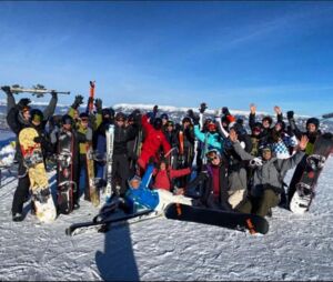 Hotel getroffen und sind dann mit dem Bus zur Gondel gefahren. Oben angekommen mussten wir uns aufteilen. Bernyce war im Anfänger Skikurs und Emilija, Emily und Lilly im Anfänger Snowboardkurs.