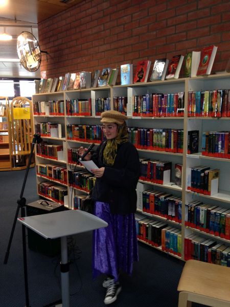 Am Montag, den 28.10.13 fuhren wir (die Klasse 7a) zur Zentralen Kinder- und Jugendbibliothek in Bornheim. Dort begrüßte uns eine sehr nette Bibliothekarin, Frau Schmidt. Sie erklärte uns, wie wir Texte kreativer schreiben und vortragen können. Um es uns zu verdeutlichen, trug sie auch selbst verschiedene Ausschnitte aus Büchern vor. Sie verstellte zum Beispiel ihre Stimme, sodass sie wie ein Mann klang, sprach mal leiser, mal lauter oder machte die passende Gesten zum Text. Hinterher stellte sie uns verschiedene Schreib-Stationen vor, an denen wir selbst kleine Geschichten schreiben sollten. An einer Station sollten wir z.B.Wörter aus einer Salatschüssel „ziehen“ und aus ihnen Geschichten schreiben („Wortsalat“). An einer anderen konnten wir einen Text weiter erzählen („Ketten-Story“). Auf der Homepage der Bibliothek konnten wir auch zwei angefangene Geschichten weiter schreiben („Cliffhanger-Buchshow“). Zum Schluss durften wir unsere Geschichten vortragen, dazu hatten wir die Möglichkeit uns zu verkleiden. Dies war sehr lustig!