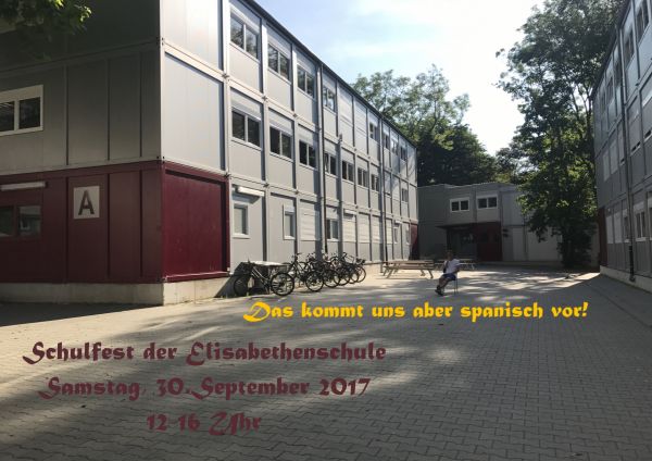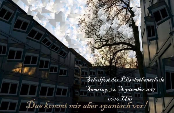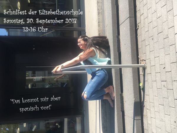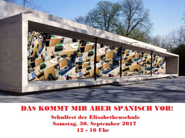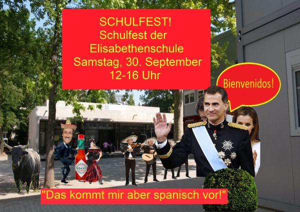 Am 30. September 2017 findet unser nächstes Schulfest statt. Nicht zuletzt weil unser Spanischbereich sein zehnjähriges Bestehen feiert lautet das Motto: "Das kommt uns aber spanisch vor!" Merkt euch diesen Termin schon einmal vor und schaut euch die ungewöhnlichen Plakate an, die dazu im GK-Kunst-Q2-Kurs (SIM) enstanden sind.