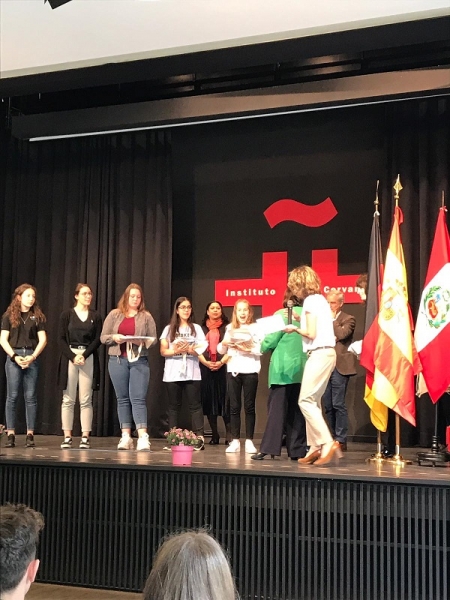 um sowohl die Juroren als auch das Publikum mit ihren Vorlesefähigkeiten zu beeindrucken. Die zu dieser Veranstaltung eingeladenen Ehrengäste (Frau Hischler, aus dem Kultusministerium; Herr Trejo, Generalkonsul Spaniens; Frau Villanueva, Generalkonsulin Mexikos; Frau Gallardo, stellvertretende Konsulin Perus) unterstützten den feierlichen Charakter des Wettbewerbs und waren maßgeblich an der angenehmen Grundstimmung beteiligt.