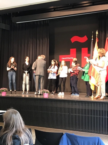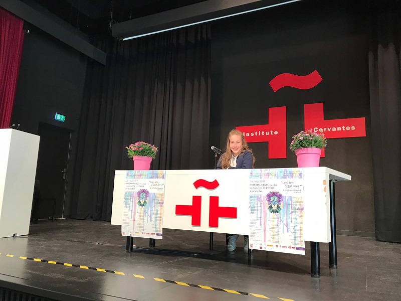 Unsere Kandidatin, Tiana Hannowsky (6d), vertrat unsere Schule in der Kategorie A1. Sie ließ sich von den vielen Zuhörern nicht einschüchtern und machte einen sicheren Eindruck. Ihre herausragende Leseleistung wurde schließlich mit Platz 1 belohnt. Die Fachschaft Spanisch und die ganze „Eli“ sind stolz auf Tiana und gratulieren ihr zu diesem riesigen Erfolg!