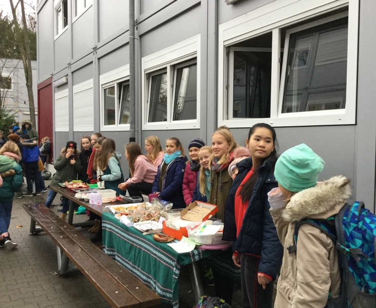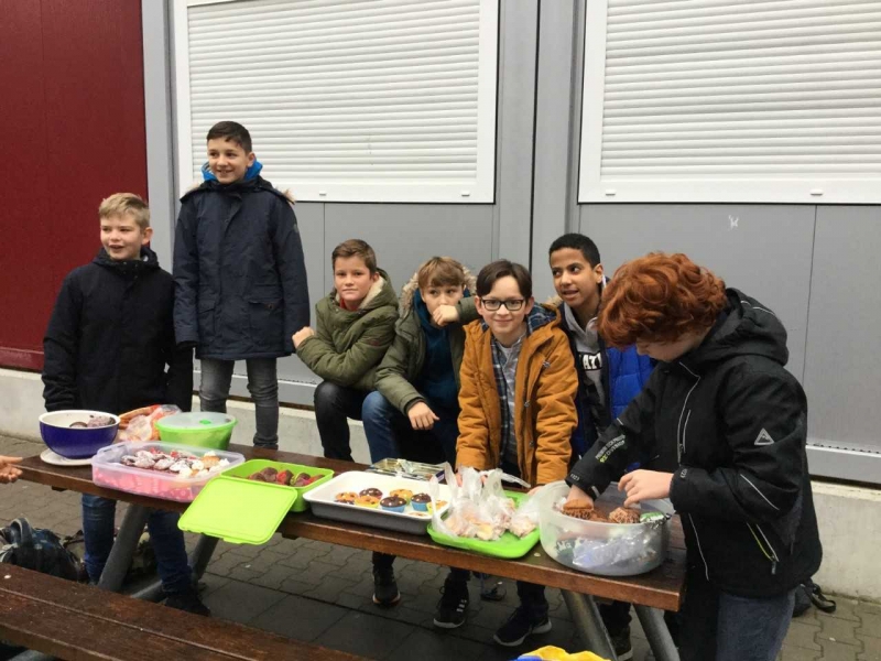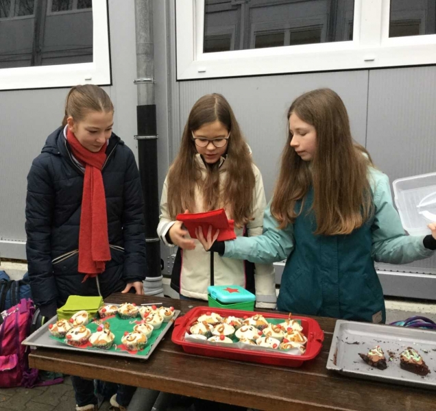 Kurz vor Weihnachten haben Schülerinnen und Schüler der Klasse 6b eine Spendenaktion organisiert und selbstgebackene Muffins, Kuchen, Plätzchen usw. während der großen Pausen verkauft. Es war ein Riesenerfolg!