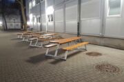 Am Donnerstag, 11.02.16 kamen am späten Nachmittag noch rechtzeitig vor dem Tag der offenen Tür die Handwerker und haben 5 Tischgruppen auf dem Schulhof aufgestellt, die der Förderkreis und der Ortsbeirat 3 der Schule gespendet haben. Damit haben Schülerinnen und Schüler auf dem Schulhof weitere Möglichkeiten sich auf Bänke und Tische zu setzen.
