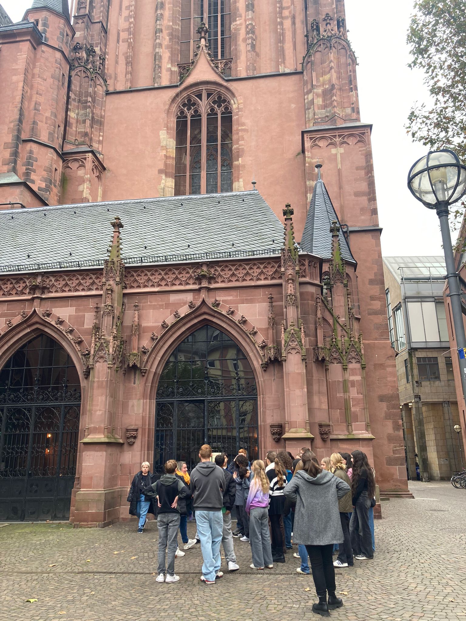 Unsere Zeitreise begann am 29.10.24 um 10:30 Uhr und ging bis 12:00 Uhr. Die Zeitreise fand im Historischen Museum in Frankfurt statt. Dafür nahmen wir die Bahn von der Holzhausenstraße, stiegen einmal um, bis wir am Römer ankamen.