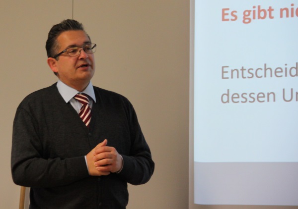 Außerdem hat er uns erzählt, dass man auch öfters an Wochenenden oder Feiertagen arbeiten muss. Als selbständiger Unternehmensberater muss man sich selbstverständlich den Unternehmen bekannt machen, zum Beispiel durch Visitenkarten austauschen oder durch eine Internetseite. Für diesen Beruf braucht man natürlich auch Erfahrung und mit der Zeit sammelt man diese auch. Danach hat uns Mischa Towfighi eine Power-Point-Präsentation gezeigt, in der er auf Fragen wie zum Beispiel „Wer kann Unternehmer sein?“ genauer eingegangen ist. Das Fazit ist, dass es nicht DEN Unternehmer gibt, jedoch ist das Geschäftsmodell und dessen Umsetzung entscheidend. Doch es gibt durchaus Risiken, die man als Unternehmer eingeht, wie Mischa Towfighi uns erzählt hat.