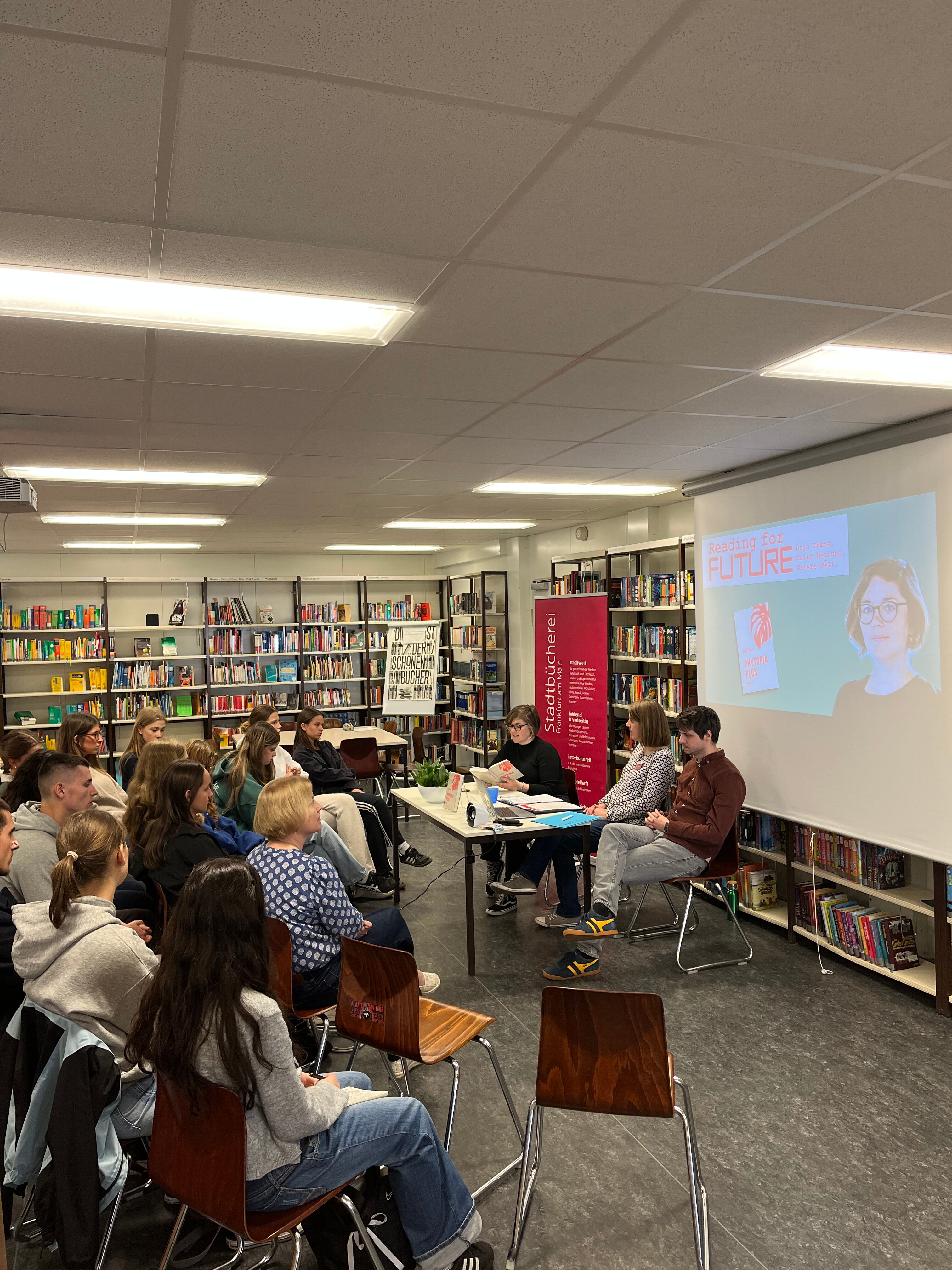 Am Donnerstag, 22.05.2025, besuchte im Rahmen der „Reading For Future“-Veranstaltungsreihe der Stadtbücherei die Autorin Zara Zerbe unsere Schulbibliothek.