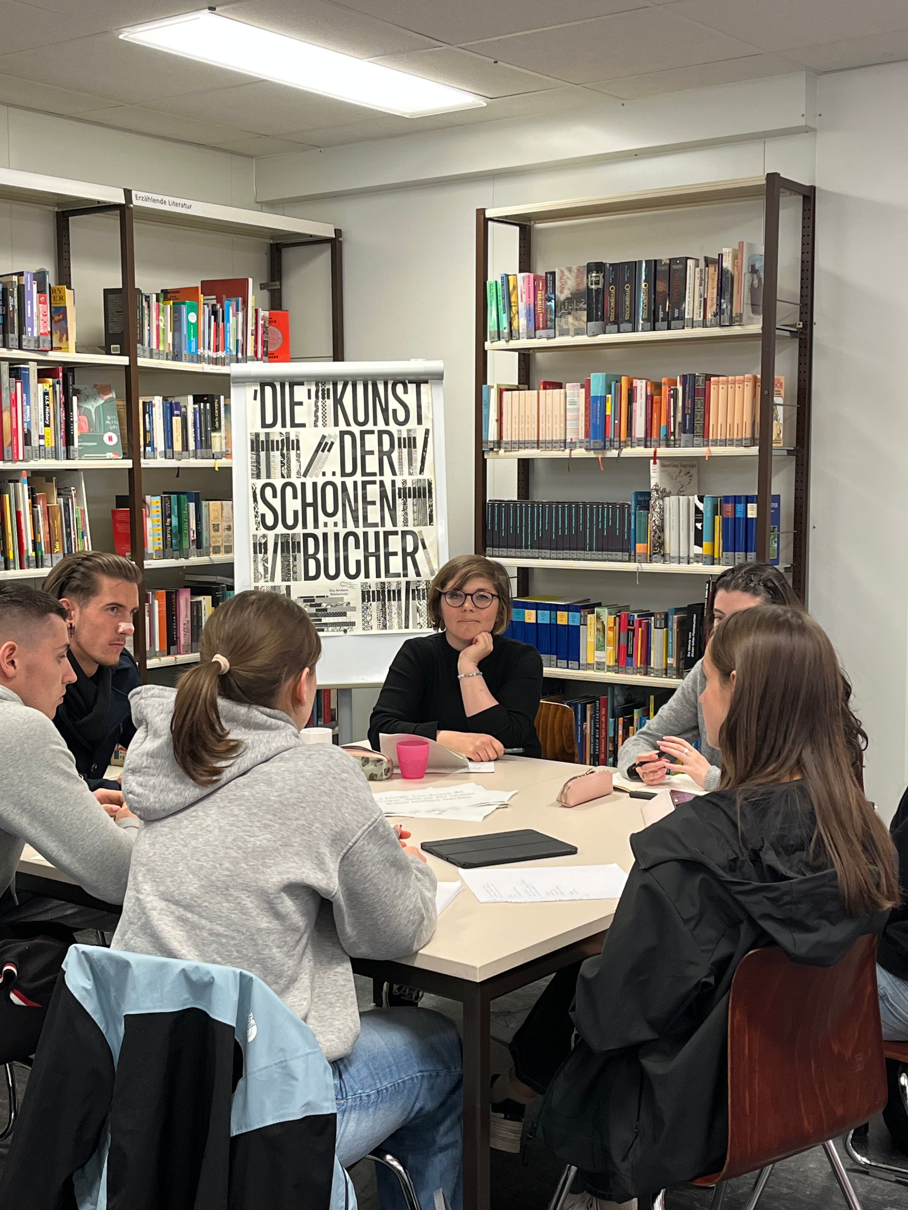 Die vierstündige Veranstaltung bestand aus einer Lesung ihres klimadystopischen Romans „Phytopia Plus“ und einem Schreib- bzw. Klimaworkshop in Kooperation mit dem Klimareferat Frankfurt und dem Verein „Umweltlernen in Frankfurt am Main“. Teilgenommen hat der Deutsch-LK aus der Q2 von Frau N. Albrecht.