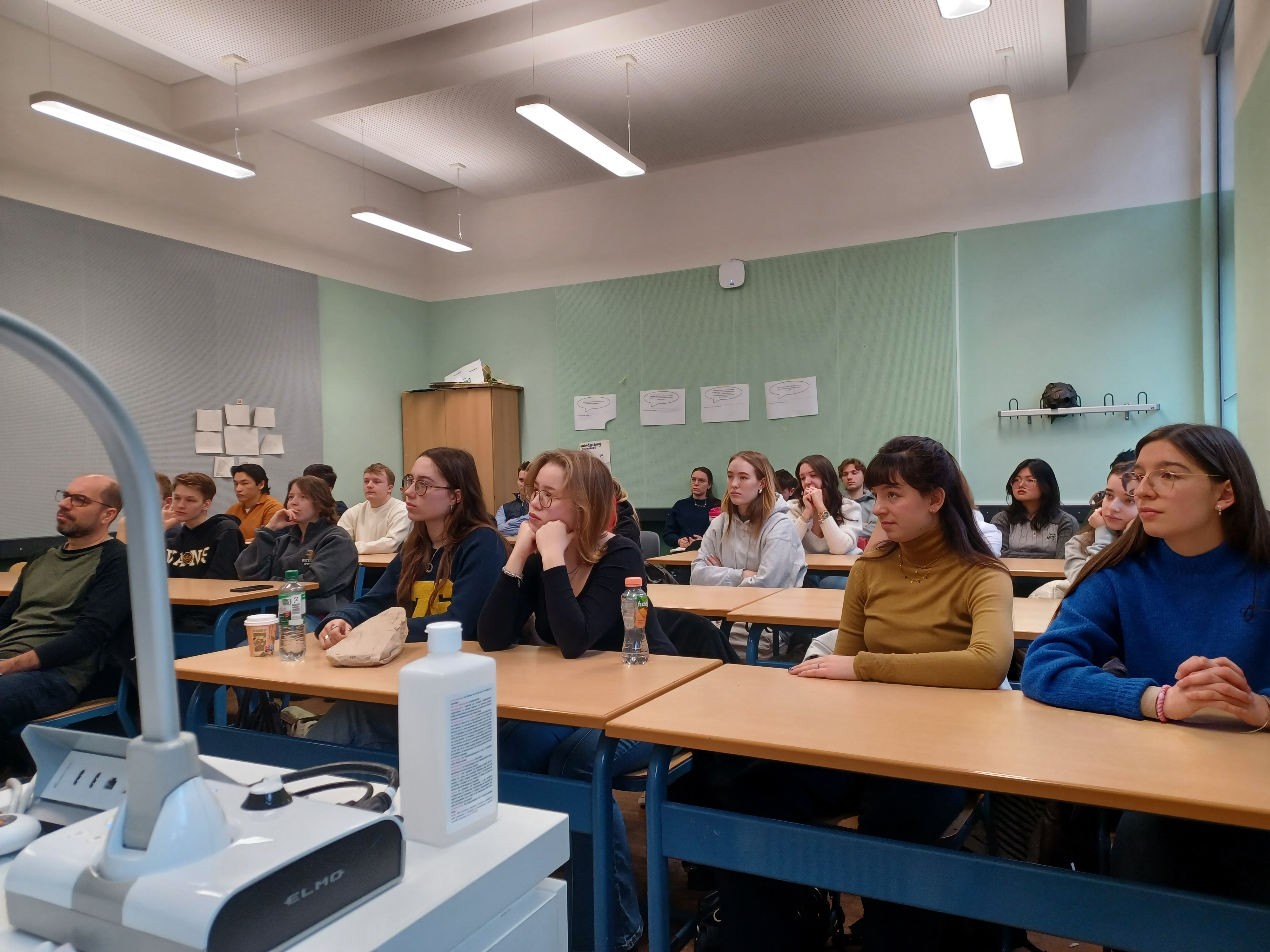 Dieser berichtete sehr anschaulich und an vielen Stellen humorvoll von seinem Leben in der ehemaligen DDR. Sachse war ins Visier der Staatssicherheit geraten und wurde mehrfach festgenommen und verurteilt. In verschiedenen Gefängnissen bekam er die Repressalien des Sozialismus zu spüren. Der Gast las zunächst einzelne Passagen seiner Erlebnisse in Haft aus seinem Buch „Die Akte S. Fünf Jahre in den Mühlen des MfS“. Anschließend berichtete er, wie er nach einem fingierten Selbstmord-versuch auf dem Berliner Alexanderplatz nach 36 Monaten Haft von der Bundesrepublik Deutschland freigekauft wurde. Am Ende durften die Schüler*innen ihm Fragen stellen, teilweise auch sehr persönliche. Beide Geschichtskurse hörten während der gesamten Veranstaltung gespannt zu und zeigten großes Interesse. Hierbei wurde deutlich, wie lebendig und hautnah Geschichte durch eine biographische Annäherung wird.