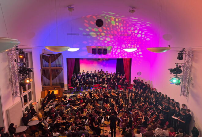 Schülerinnen und Schüler der Elisabethenschule waren Teil der Frankfurter Schulphilharmonie unter Leitung von Nicolai Bernstein. Die Frankfurter Schulphilharmonie hatte ihre Premiere am So, 26.04.2026, von 11:00 Uhr – 12:00 Uhr im vollbesetzten Großen Saal der Alten Oper in Frankfurt am Main.