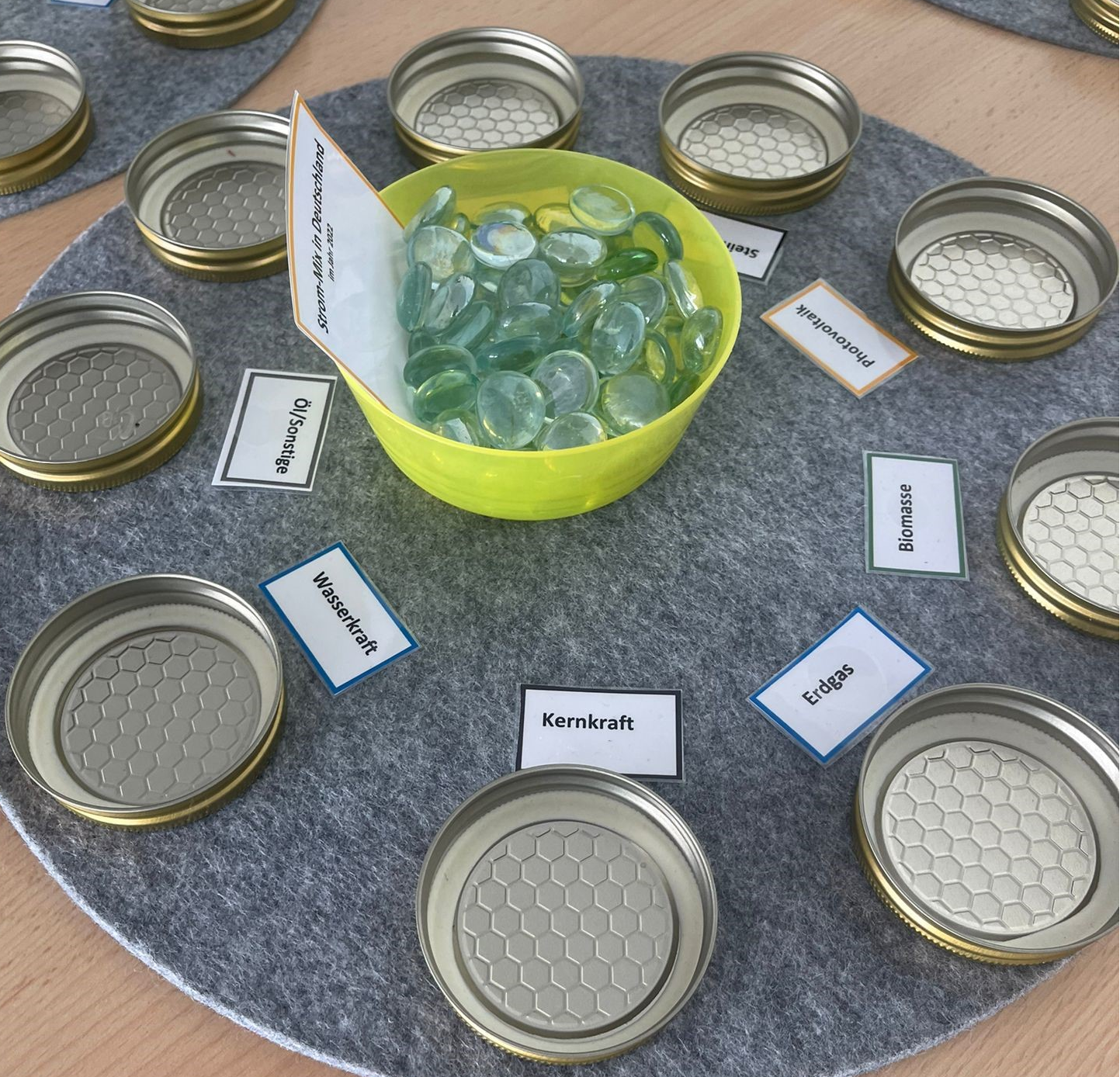 Dies passiert in engem Kontakt mit dem Verein für Umweltlernen, Frankfurt am Main. So nimmt das Energieteam an den Praxisseminaren des Vereins für Umweltlernen Frankfurt am Main teil, z.B. "Heizenergie schlau nutzen" (https://umweltlernen-frankfurt.de), um neue Anregungen und Ideen zur Reduzierung des Energieverbrauches zu bekommen. Zusammen mit dem Verein für Umweltlernen organisieren und planen wir auch Lernwerkstätten. In der letzten Lernwerkstatt haben sich z.B. alle 10ten Klassen damit beschäftigt, durch welche verschiedenen Energieträger unser Stromverbrauch gedeckt wird: