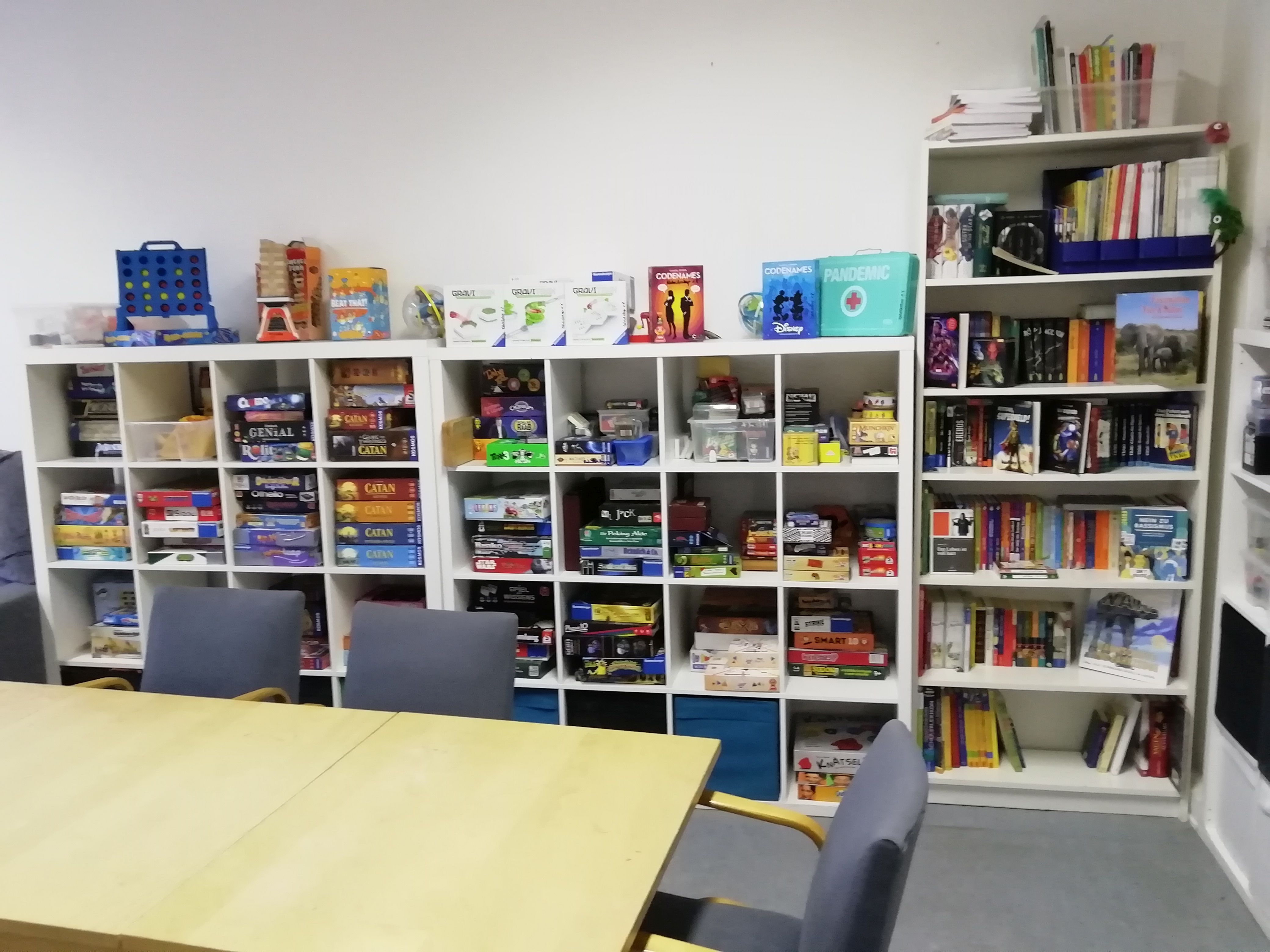 Ihr könnt euch täglich von 12.30 Uhr – 17.00 Uhr in der Schülerwohnung aufhalten. Dort könnt ihr relaxen, lesen, kickern oder Gesellschaftsspiele ausleihen, wie zum Beispiel Skullking, Phase 10, Siedler von Catan und viele andere.